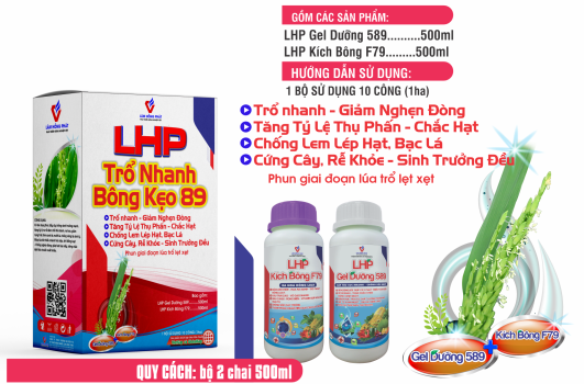 Trổ Nhanh Bông Kẹo 89 là bộ sản phẩm chuyên dùng cho giai đoạn trổ của cây lúa, giúp trổ đồng đều, hạn chế nghẹn đòng, tăng tỷ lệ thụ phấn và chắc hạt, kéo dài bông và cải thiện chất lượng hạt lúa.